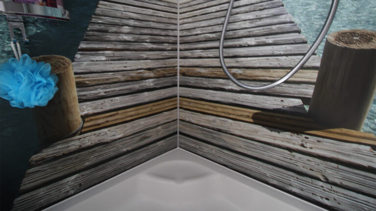 Hier durften wir für frische Optik in der Dusche sorgen mit einer tollen neuen Duschrückwand.